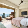 Двуспальная кровать king-size, гардеробная, диван-кровать, ванная комната с душем, меблированный балкон и панорамные окна (шезлонг у бассейна, кофейный столик, ковер, лаунж-кресла, обеденный стол для зоны отдыха, подвесное кресло), вид на море;