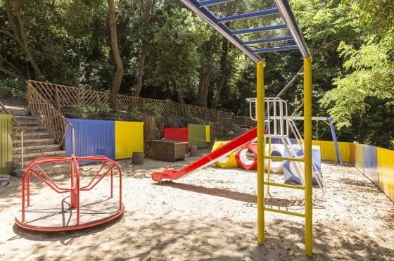 Детская площадка (в тени деревьев, покрытие – песок) ● детская секция в центральном бассейне ● няня по запросу (платно)