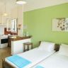 Во всех номерах: кухонный уголок (плита, микроволновка, чайник, посуда, холодильник), гостиная зона, ванная комната с феном.