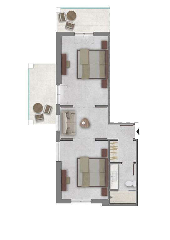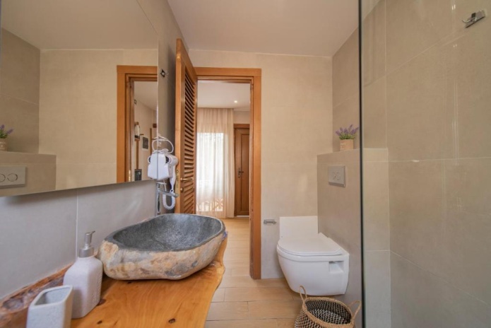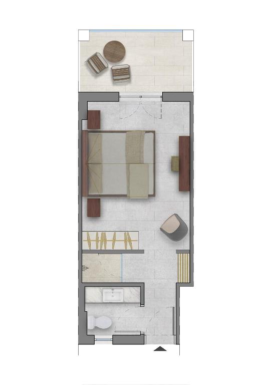 Во всех номерах есть кондиционер, телевизор и мини-холодильник, набор для приготовления чая-кофе, сейф, фен, бесплатный Wi-Fi, балкон или терраса.
