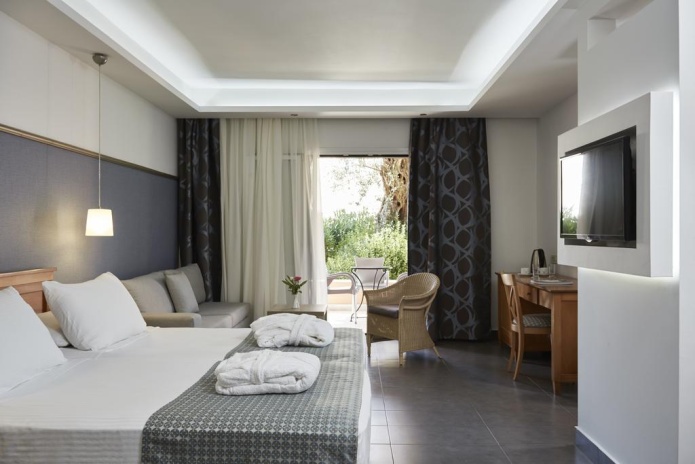 Отель для семейного отдыха на Корфу – Fun & Sun Apollo Palace 5* – расположен в рыбацкой деревушке Месонги, в 200 метрах от одноимённого пляжа. Отель работает на «Всё включено» и предлагает гостям всех возрастов полный комплекс развлечений и активностей. Для детей работает детский клуб, есть бассейны и площадка. Для взрослых – спортивные занятия: от акваэробики до бочче, анимация, вечерние шоу и дискотека.
