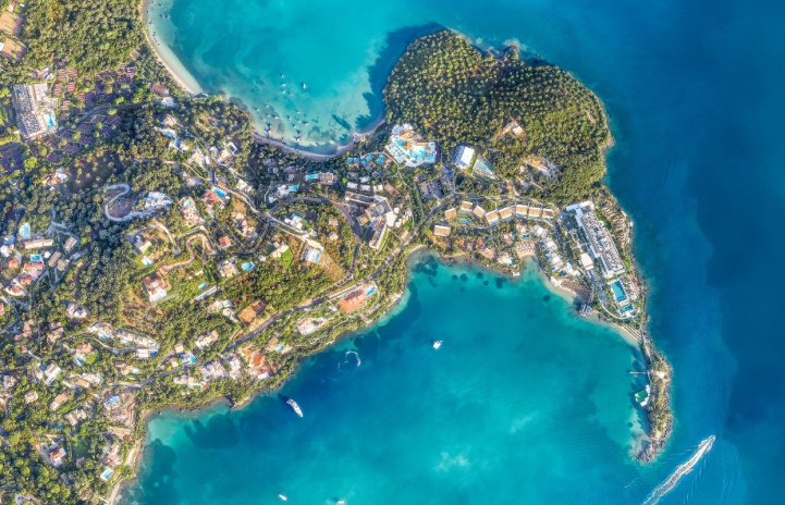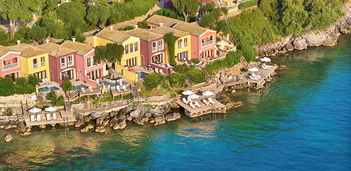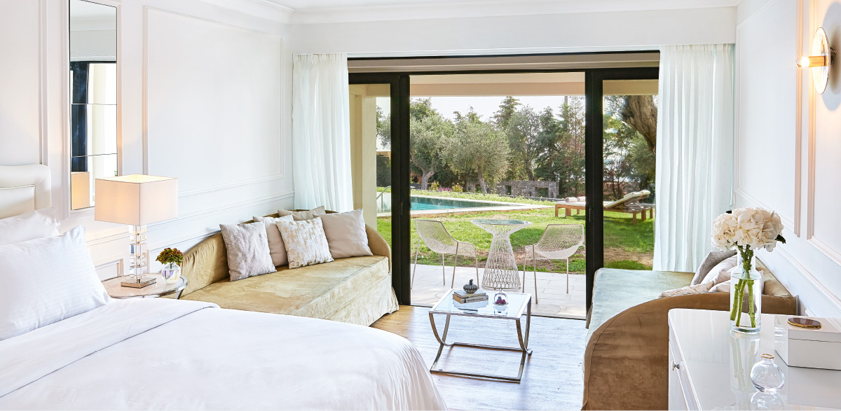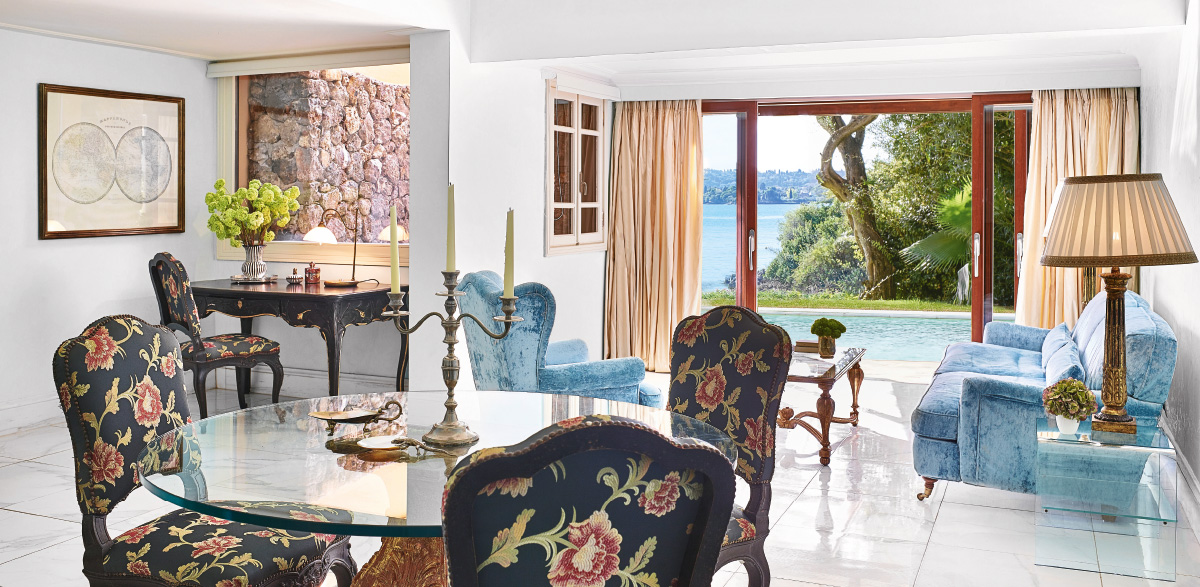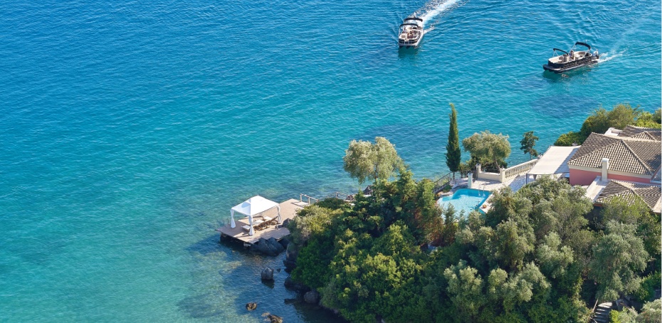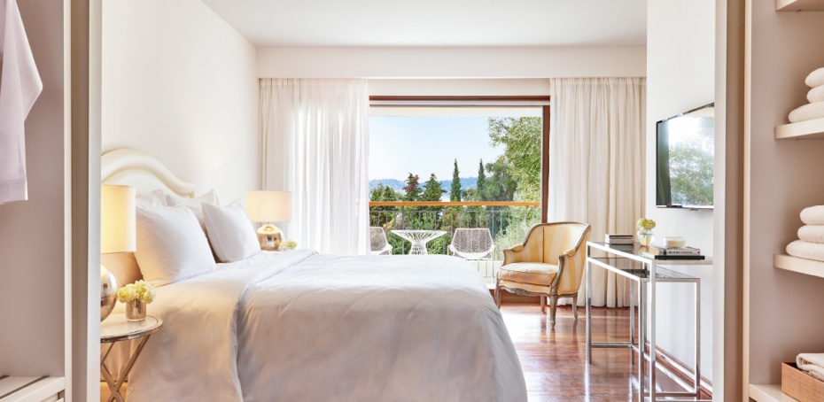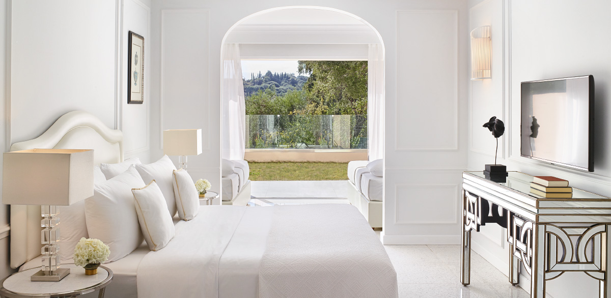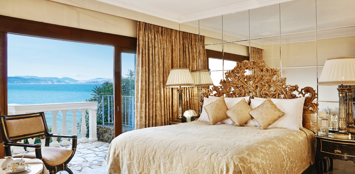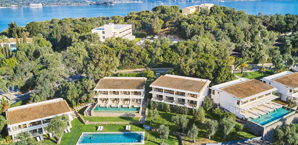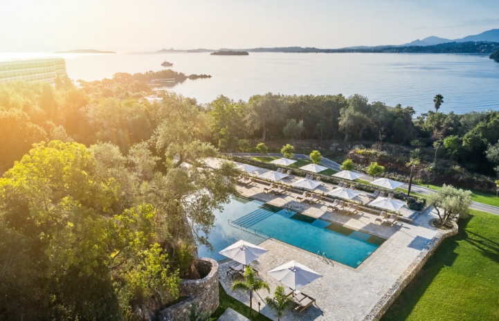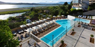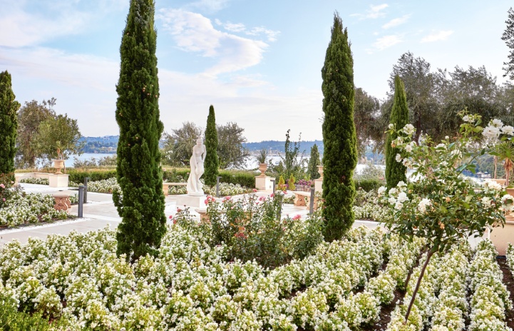 Отель Grecotel Corfu Imperial построен на частной территории полуострова Коммено среди кипарисов, оливковых деревьев, садов, разбитых в итальянском стиле, на берегу Ионического моря.
