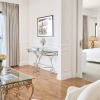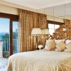 , расположены в основном здании на 5-м этаже, спальня с двуспальной кроватью king-size, гостиная комната с диваном и дополнительно возможны 2 односпальные кровать, просторная ванная комната с 2 умывальниками и душем, гардеробная, панорамный вид на море, балкон (12 м²), план номера;