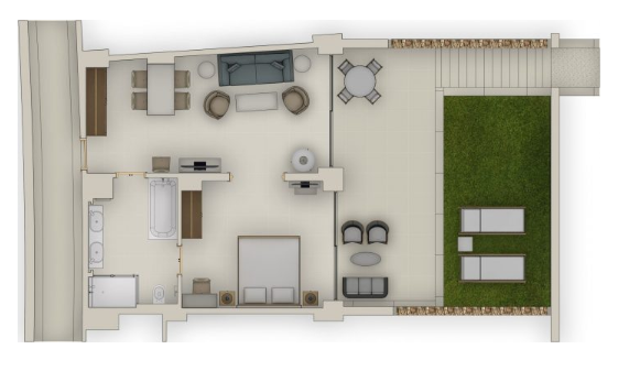 - Dlx 1bedroom suite priv garden (50 м², макс. 2+3 или 3+2).
