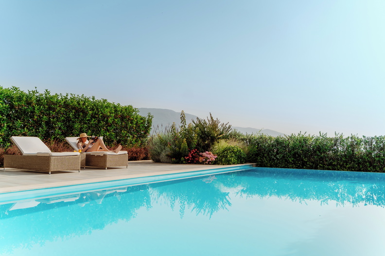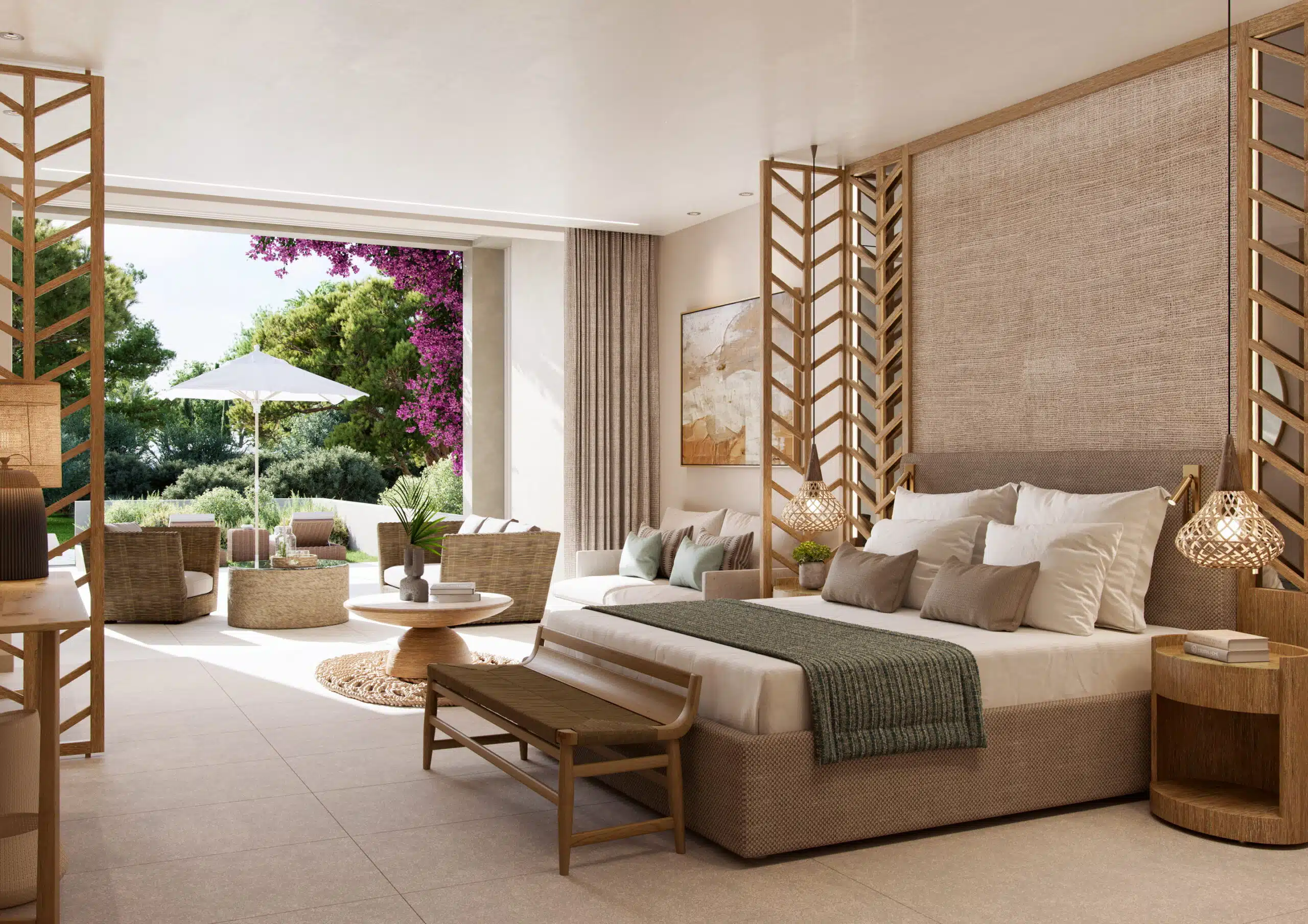 - Junior Suite Private Garden Pool View (39 м², макс. 4 чел.).