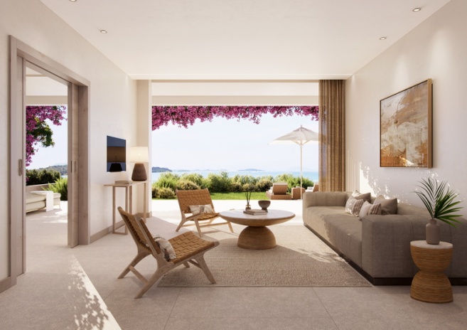 - Deluxe Junior Bungalow Suite Private Garden Garden View/Sea View (45 м², макс. 4 чел.).
