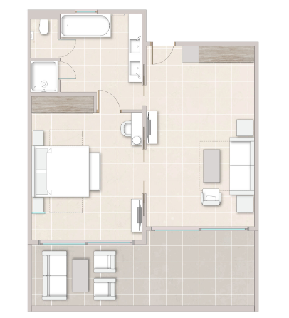 - 1 Bedroom Suite Balcony Garden View (60 м², макс. 5 чел.).
