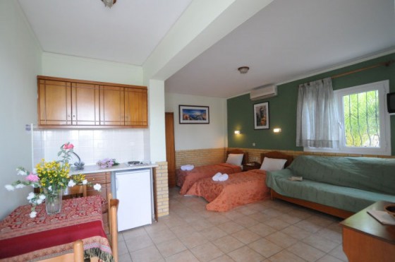 Studio – односпальная кровать, стол и стулья, туалетный столик с зеркалом и мягким пуфом и встроенный шкаф, а также хорошо оборудованная кухня. Maisonette two floor - Все двухэтажные мезонеты прекрасно оборудованы: в них есть две односпальные кровати, стол и два стула, туалетный столик с зеркалом и мягким пуфом и встроенный шкаф, а также хорошо оборудованная кухня.