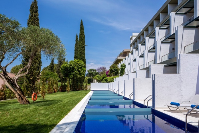 Отель находится в 8 км севернее г. Корфу и аэропорта и расположен на зеленом полуострове с видом на Ионическое море. Всего в 7 мин ходьбы от отеля находится оживленная курортная деревушка Контокали.