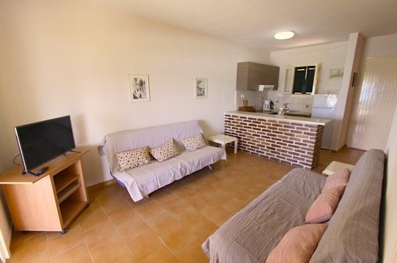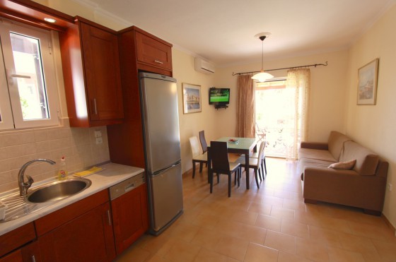 A2 (75 кв.м.), 2 спальни, 2 балкона, гостиная, кухня, ТВ, 1 ванная, кондиционер. Апартамент рассчитан на 2 – 6 человек. A3 (на первой линии от моря – 55 кв.м.), с 2 спальнями, гостиная с кухней, ТВ, ванная, балкон с видом на море, кондиционер, большая веранда. Апартаменты рассчитаны на 2 – 6 человек.