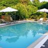 • большой сад с бассейном, площадка и мангал для барбекю, парковка, зона отдыха в саду со стульями и столиком.