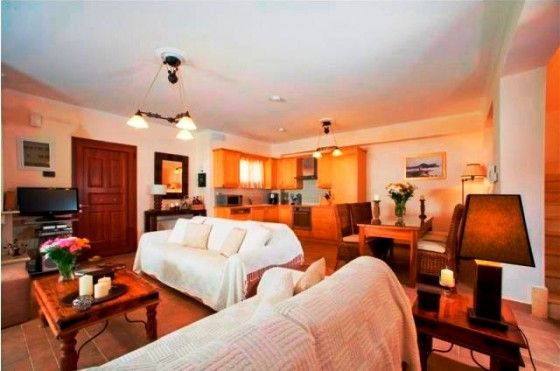 Внутреннее пространство каждого здания кондиционируется с помощью конвекторной системы обогрева и охлаждения. Кроме того, виллы подключены к центральной системе отопления. На первом этаже: полностью оборудованная кухня открытого типа (стиральная и посудомоечная машина, кофеварка с фильтром и кофеварка кофе эспрессо, тостер, чайник), столовая и гостиная с камином. Одна спальня с двуспальной кроватью и смежной ванной. Стеклянные двери площадью 2,5 м2 выходят прямо в сад и зону бассейна. Отдельное хозяйственное помещение, в котором находится стиральная машина, бельевой шкаф, оборудование для глажки и пылесос. На втором этаже: две спальни. В первой спальне - две односпальные кровати, которые можно объединить в одну двуспальную, ванная комната и отдельный балкон. Вторая спальня с двуспальной кроватью, смежной ванной с джакузи. Все спальни – с видом на море.