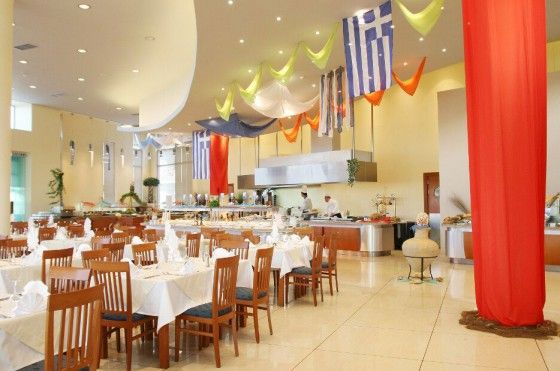 Основной ресторан, с местами для некурящих и открытой верандой, ресторан у бассейна, бар у бассейна, закусочная, A la carte ресторан, диско бар, Grill BBQ ресторан.