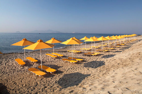 Общественный песчаный пляж в 50 м от отеля, через дорогу. Шезлонги и зонты на пляже бесплатно.