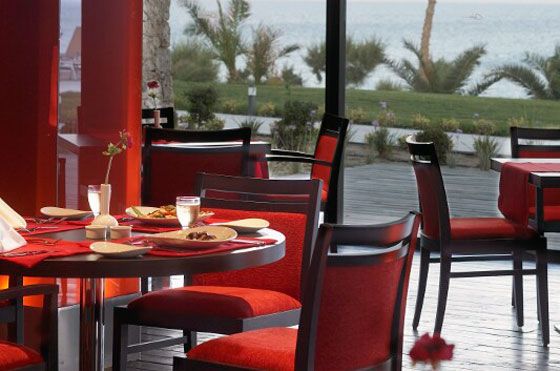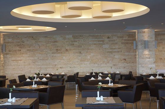 “Mediteranneo” - главный ресторан - расположен в главном здании, предлагает Интернациональную и Греческую кухню – шведский стол с демонстрацией приготовления блюд. Завтрак 07:30–10:30, обед 12:30–14:00, ужин 19:00–21:30.