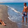 Общественный галечный пляж, шезлонги и зонты на пляже (бесплатно).