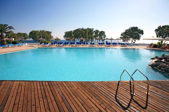 1 открытый бассейн с пресной водой, 2 открытых бассейна с морской водой, шезлонги и зонты возле бассейнов бесплатно, пляжные полотенца на рецепции под невозвратный депозит (5 евро за номер).