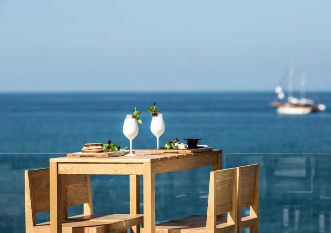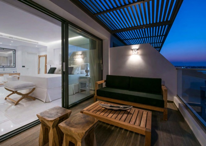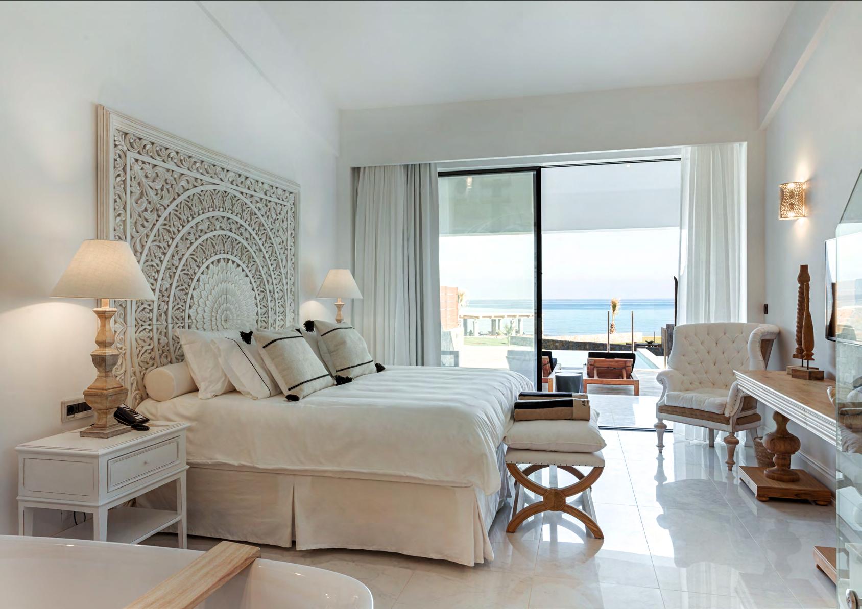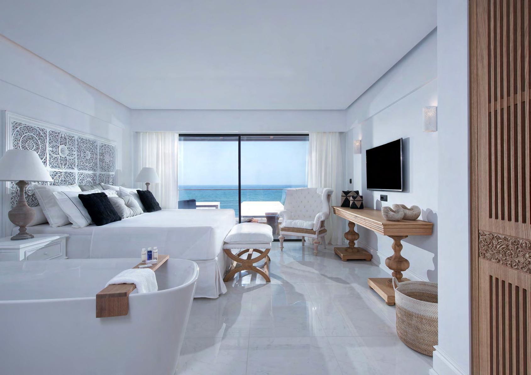 Thalassa Deluxe Seafront Guestroom (37 кв. м, общая – 47 кв.м.). Макс. – 2 взрослых. Роскошный номер с меблированным балконом и прямым видом на море.