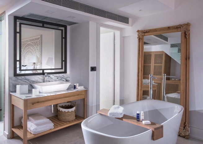 Abaton Collection Suite With Private Outdoor Jacuzzi (45 кв. м, общая – 70 кв.м.). Макс. – 3 взрослых. Двухуровневый номер с отдельными гостиной и спальней, собственным джакузи на открытом воздухе и видом на море.