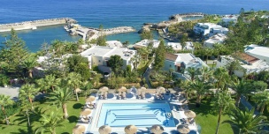 Отель расположен прямо на пляже, в северной части Крита, рядом с живописной рыбацкой деревней Георгиуполис, всего в 36 км от столицы города Ханья и в 19 км от старого города Ретимно.