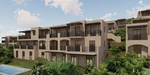 Песчано-галечный пляж поселка Аниссарос - 300 метров от отеля.