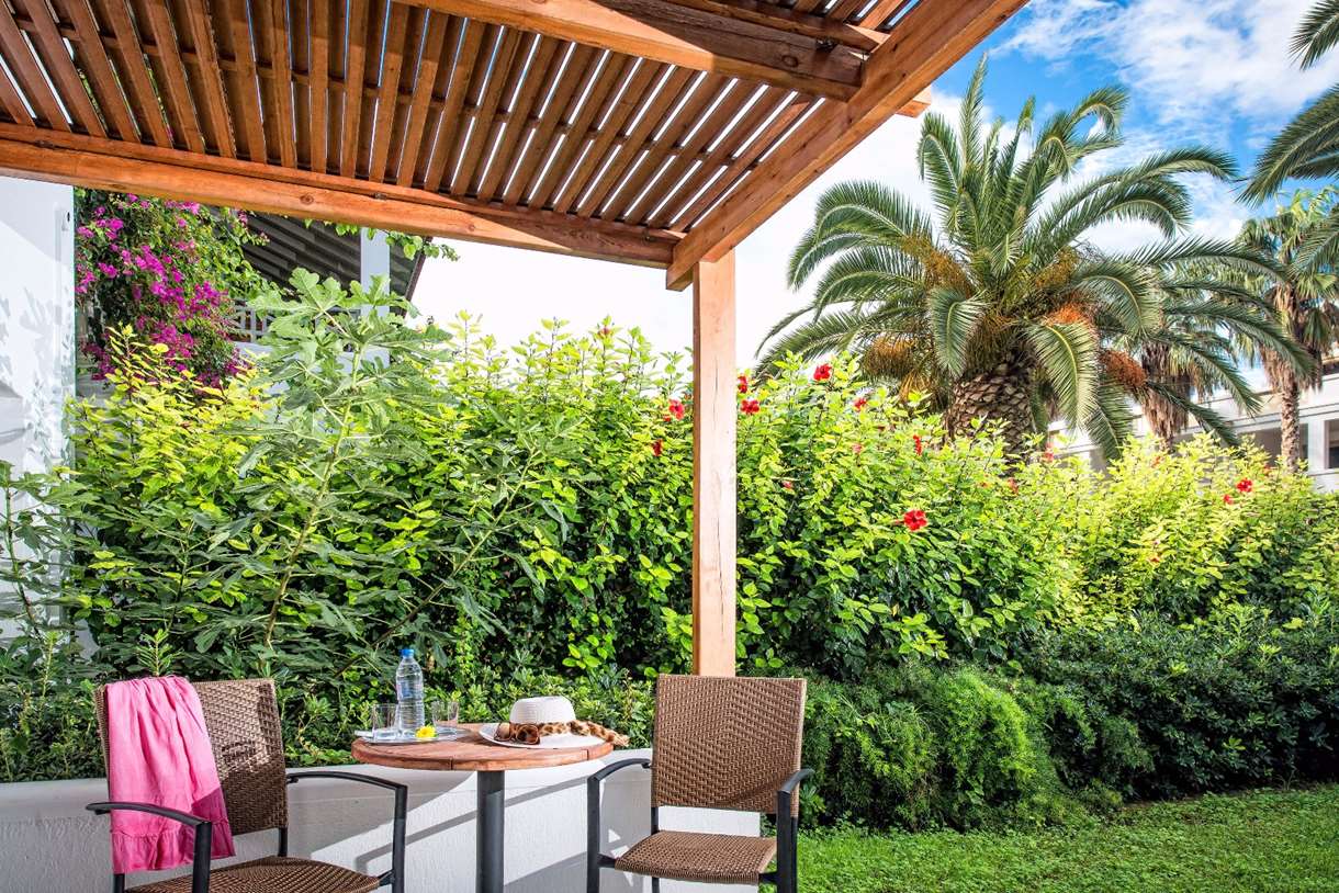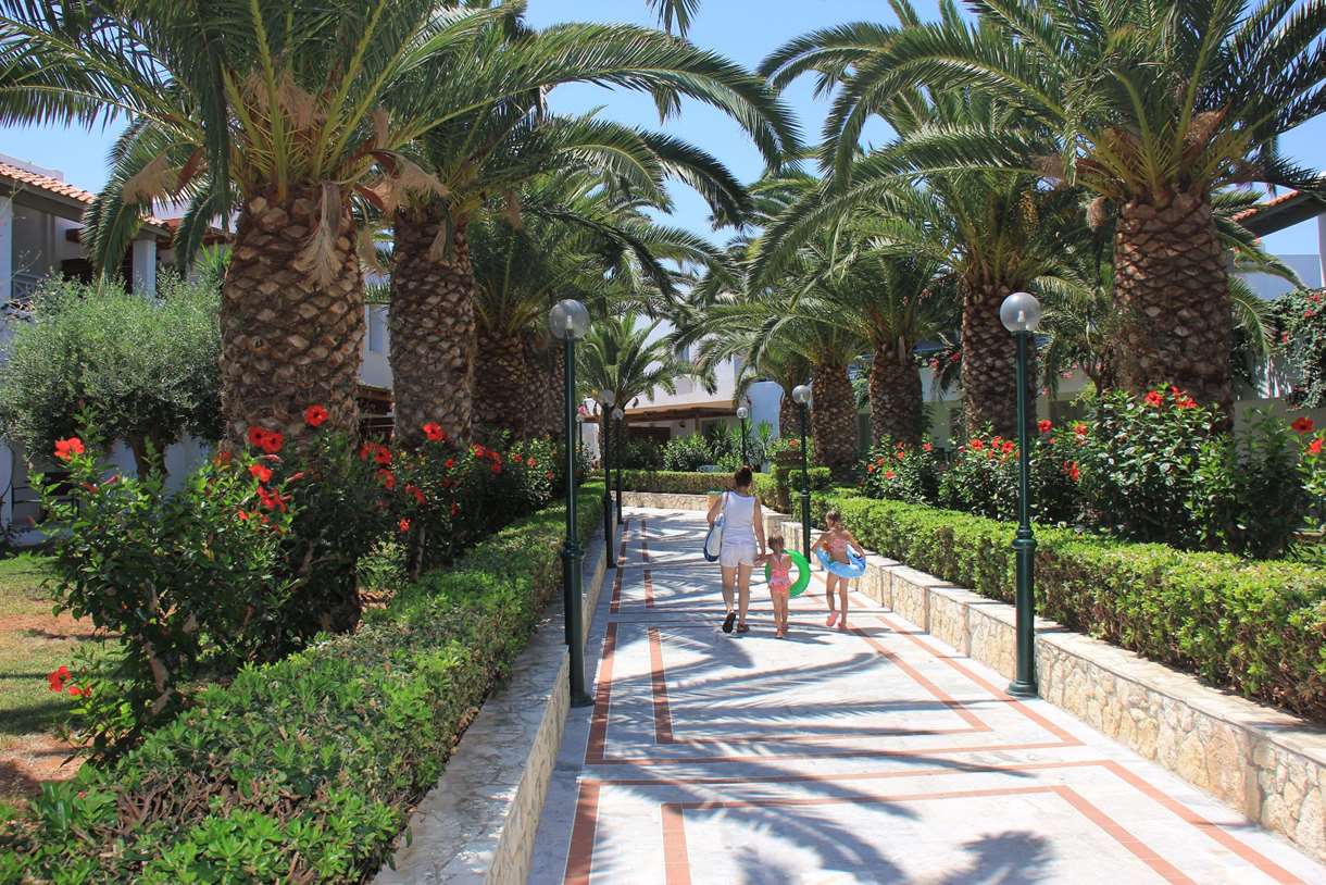 Очень зеленый уютный отель бунгального типа в курортном местечке Анниссарос.