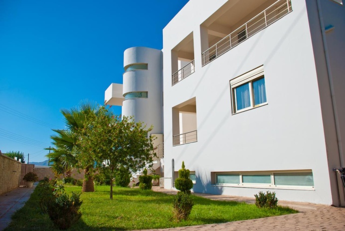 Все апартаменты – с балконом, откуда открывается вид на Критское море.