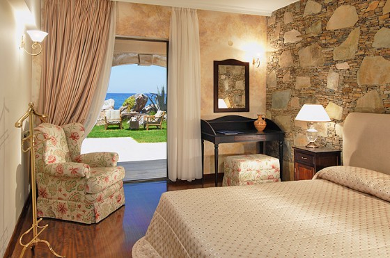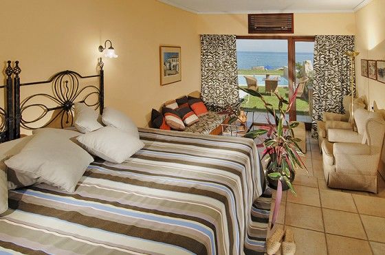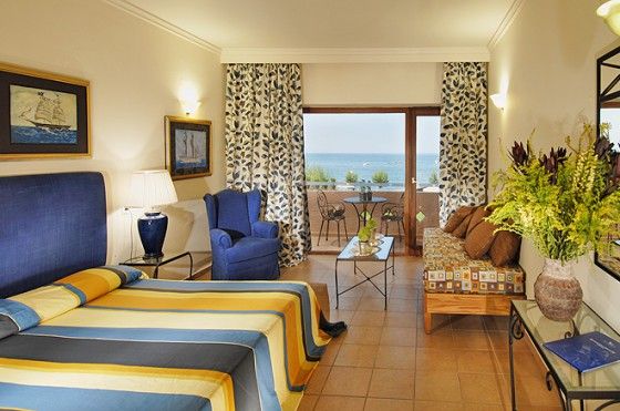 Состоит из спальни, ванной комнаты и балкона с видом на море или в сад.