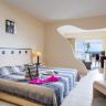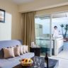 Всего в отеле 202 номера в основном 7-этажном здании. Standard inland view (вид на окрестности; низко расположенные номера – с видом на подножие холма, осн. кровать – 2 односпальные, доп. – софа или раскладная кровать, макс. 3 чел., 25–30 м2); Standard sea view (вид на море, осн. кровать – 2 односпальные, доп. – софа или раскладная кровать, макс. 3 чел., 25–30 м2); Family sea view (вид на море, 2 спальни с дверью, осн. кровать – 2 односпальные, доп. – 2 односпальные кровати, макс. 3+1 чел., 40–45 м2), есть несколько номеров без двери, с перегородкой; Junior suite (вид на море, спальня с гостиной зоной, осн. кровать – 2 односпальные, доп. – софа или раскладная кровать, джакузи на террасе, макс. 2+1 или 3 чел., 45 м2).