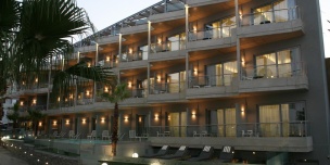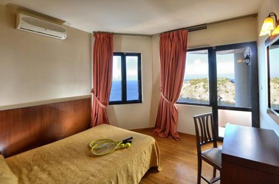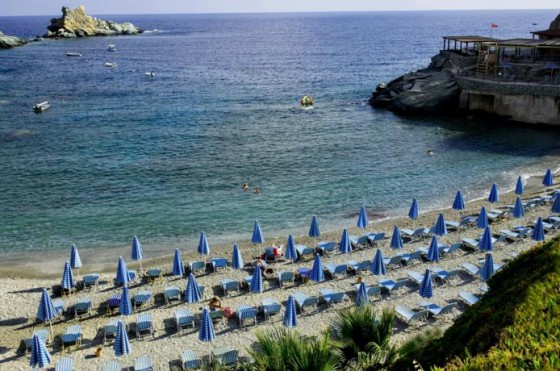 Песчано-галечный в 200 м от отеля. Предоставляются зонтики и лежаки.