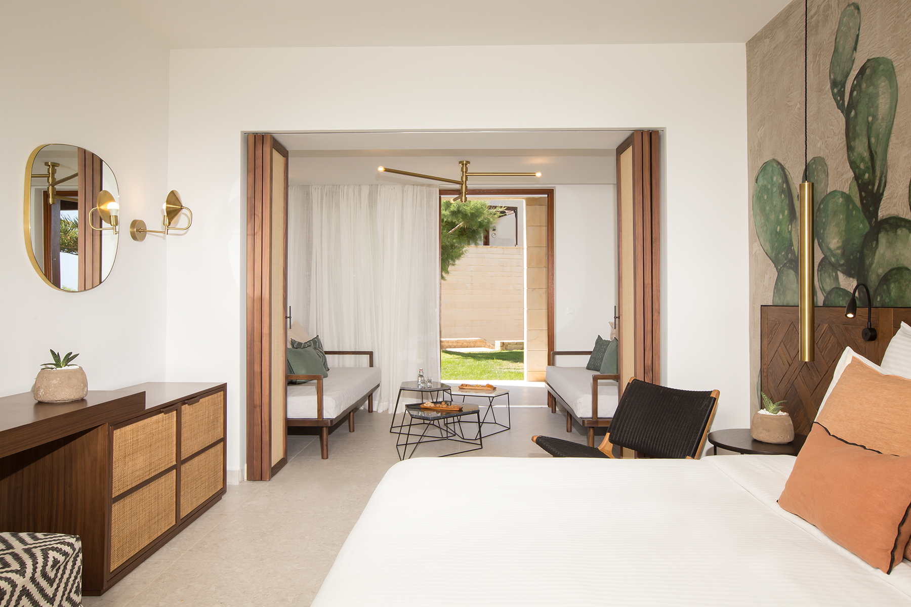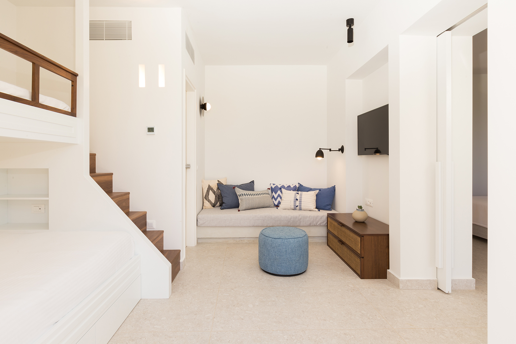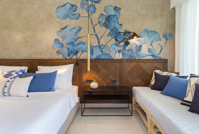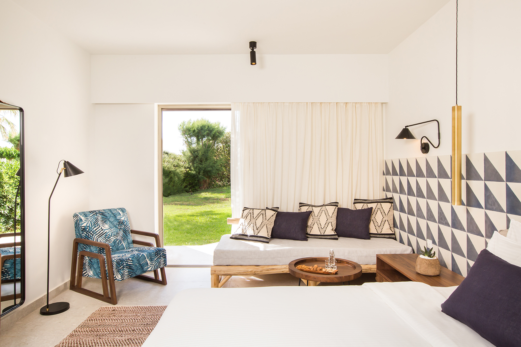 FAMILY ROOM - 36 м2, максимально 2+2. Состоит из спальни, гостиной, ванной комнаты и балкона. BUNGALOW GV - 26 м2, максимально 3 человека. Состоит из спальни с зоной гостиной, ванной комнаты и балкона/террасы с видом в сад.