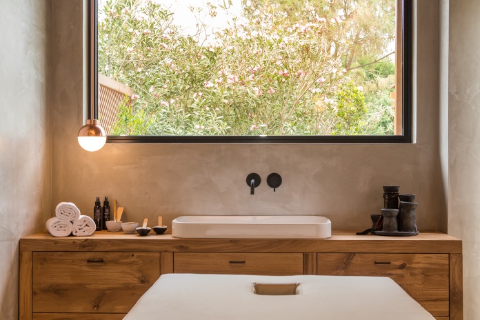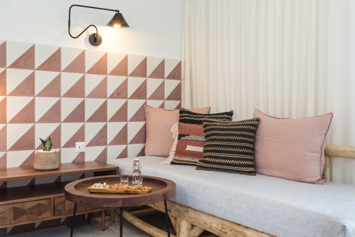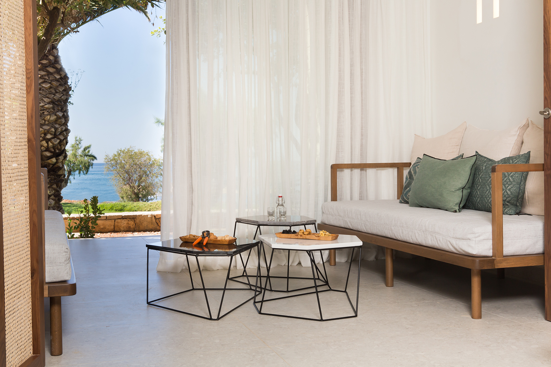 BUNGALOW SV - 26 м2, максимально 3 человека. Состоит из спальни с зоной гостиной, ванной комнаты и террасы с видом на море.