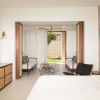 BUNGALOW POOL FRONT - 26 м2, максимально 3 человека. Состоит из спальни с зоной гостиной, ванной комнаты и террасы с прямым выходом к бассейну.