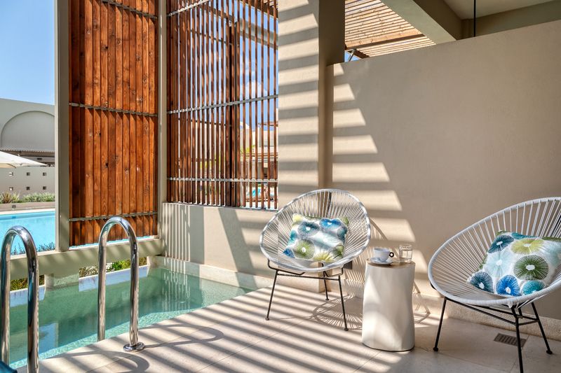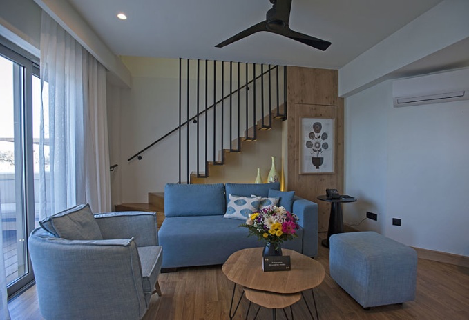 Отель был открыт в 2016 году. Вся мебель в отеле – ручной работы, интерьеры выполнены в мягких тонах, а архитектура – в средиземноморском стиле.