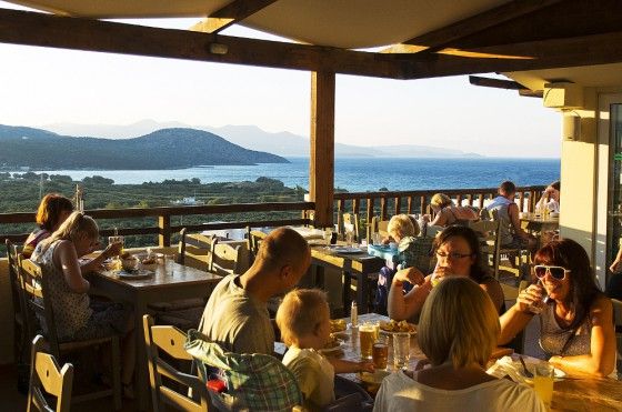 Основной ресторан Kouzina, таверна Shara, Кофейня Kafenion Synastisi, Бар у бассейна Thea, бар Saloni.