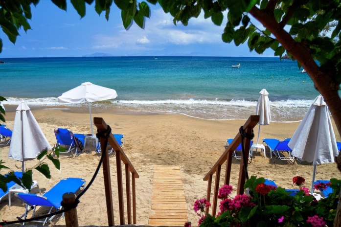 собственный песчаный пляж в 10 метрах (лежаки и зонтики — бесплатно)