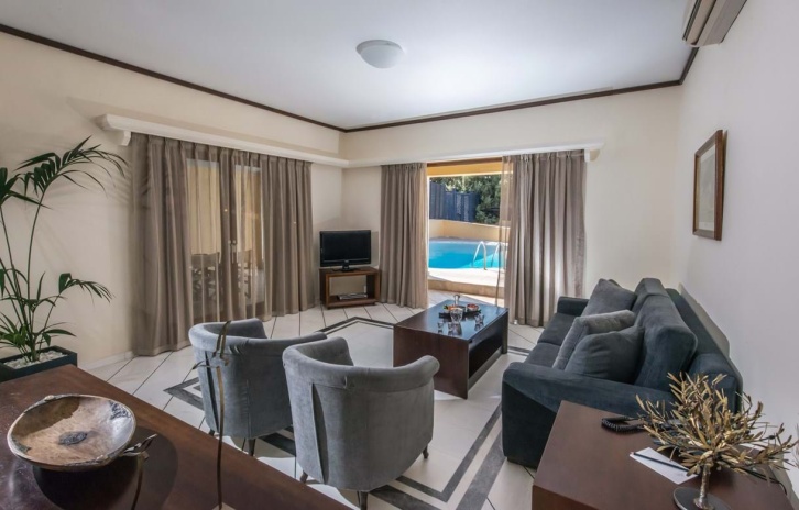 Отель Fodele Beach расположен на территории 58 000 м2 у берега моря в деревушке Фоделе, на северном побережье острова Крит. Отель состоит из 3-этажного корпуса и 33-х 2-3хэтажных бунгало. К услугам гостей просторные стильные номера, аквапарк, 3 открытых бассейна, 3 ресторана и бары, спа-центр, аквапарк и детский клуб, теннисный корт и полностью оборудованный фитнес-зал. На территории есть часовня, где проводят свадебные торжества.