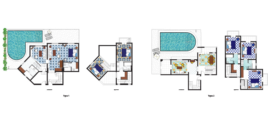 Расположенные прямо на живописном песчаном пляже с панорамным видом на море, виллы с многоуровневой планировкой подходят для семей или пар. Дизайн напоминает средиземноморский пляжный дом, 2 спальни с кроватями king-size, гостиная зона с дополнительной односпальной кроватью, 2 ванные комнаты с душем, частная беседка напротив виллы, прямой доступ на пляж, терраса (4 – 10 м²), план номера, см.фото номера;