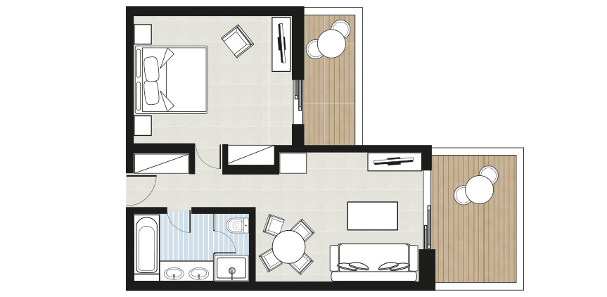 - 2 Bedrooms Luxury Bungalow Suite (70 м², макс. 4+2, 3+3, 2+4).