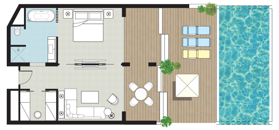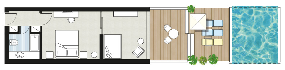 • Swim-Up Guestroom Sea View with Garden (35 м², макс. 2+1).