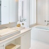 Номера расположены во всех корпусах, на втором и третьем этажах  с видом на море, спальня с кроватью king-size, гостиная комната с двумя односпальными кроватями  (между комнатами раздвижная дверь), гардеробная, ванная комната с ванной или душем, дополнительный душ, стеклянные панели от пола до потолка, 2 балкона (по 8 м²), см.план номера, см. фото номера;