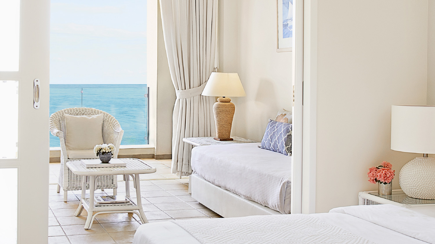 Номера расположены в корпусе в саду на первом и втором этажах (ground, 1st), 2 спальни (в одной – двуспальная кровать king-size или 2 односпальные кровати, в другой – 2 односпальные кровати), ванная комната с душем, балкон или терраса (3-5 м²), вид на сад/боковой вид на море/вид на море, см.план номерасм.фото номера;