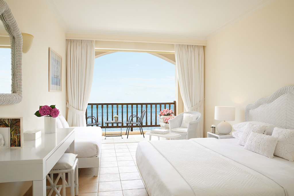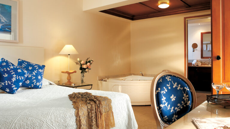 В зоне Marine Palace, на самом верхнем этаже главного здания (3 rd floor), 3 спальни: 2 двуспальные кровати king-size, 2 односпальные кровати и 3 дополнительных односпальные кровати, 3 ванные комнаты с душем, терраса, внешняя площадь – 45 м², частная веранда на крыше с гидромассажной ванной и панорамным видом на море, см. план номера;