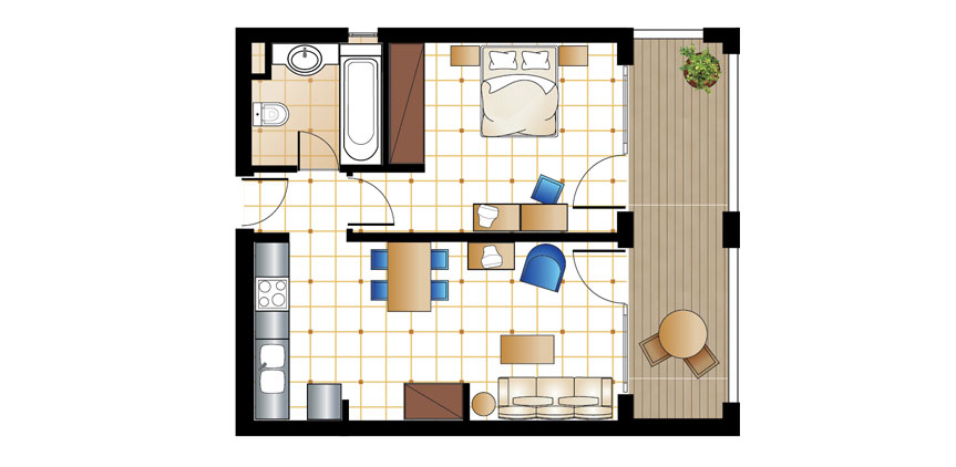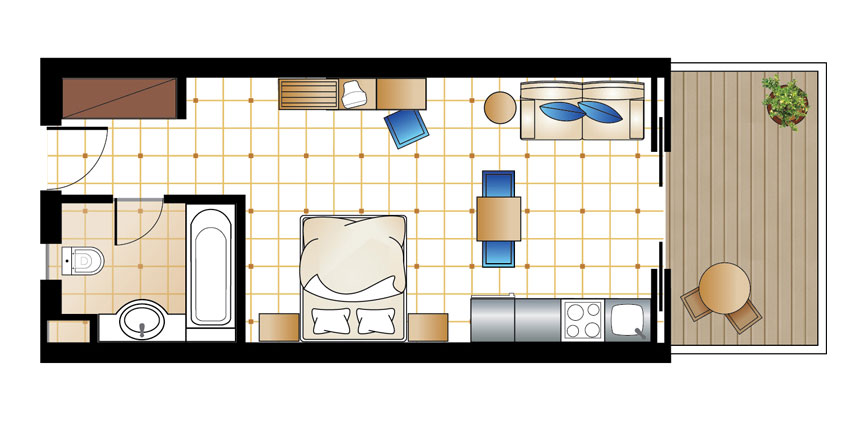 - Family Open Plan Side Sea View (35 м², макс. 2+2).