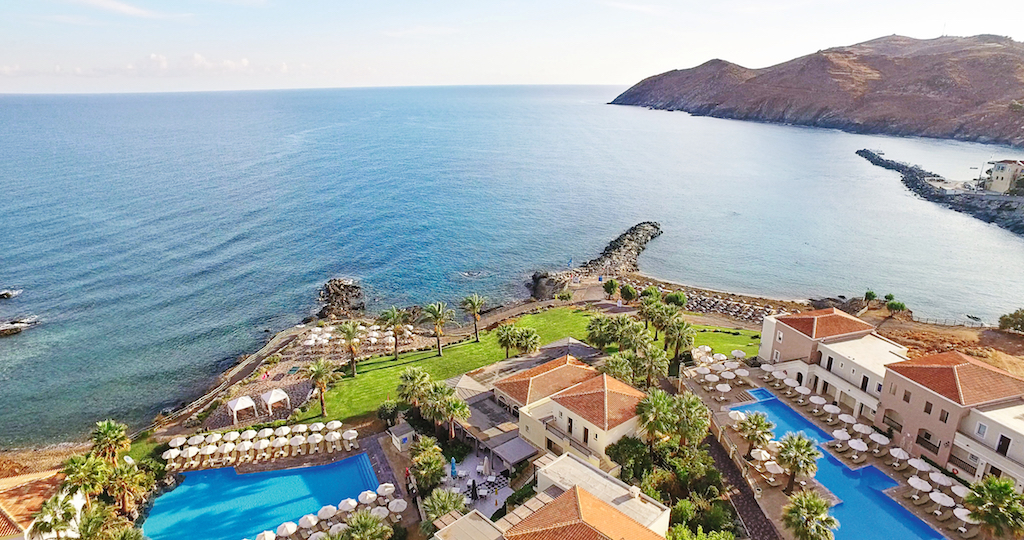 Семейный отель Grecotel Marine Palace & Aqua Park (ex. Grecotel Club Marine) расположен у пляжа в рыбацкой деревушке Панормо. Комплекс построен в стиле традиционной критской деревни.