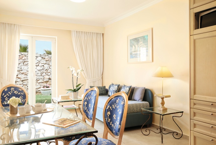 Номера расположены на первом – втором этажах (ground, 1st floor), спальня с двуспальной кроватью king-size, гостиная комната с диваноми кухонным уголком с обеденным столом, ванная комната с ванной, терраса или балкон, вид на бассейн/сад, см.план номера, см.фото номера;