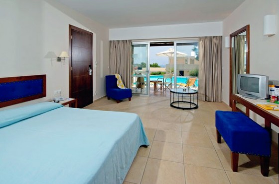Двухэтажные номера. 1 этаж: спальня с двумя кроватями, ванная комната, балкон с выходом к частному бассейну на несколько номеров и видом на море; 2 этаж: спальня с кроватью king size, душевая.