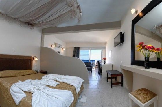 Всего в отеле 100 номеров. Standard Room Sea View Все с видом на море, больше размером, кондиционер с индивидуальным контролем, ванная комната (ванна или душ), фен, балкон или терраса, прямой телефон, музыкальный канал (через ТВ), спутниковое телевидение, мини-холодильник, сейф (за доплату). Superior Rooms Sea View Больше стандартного номера, панорамный вид на море, набор для приготовления кофе/чая, по прибытии Nescafe и чай & бутылка вина и минеральная вода - бесплатно, банные халаты и тапочки. Superior Sea View Golden Wing Номер большего размера, видео по запросу системы с выбором фильмов (за дополнительную плату), сауна Hydro "Данай", по прибытии - бутылка игристого вина, заполненный холодильник (безалкогольные напитки, соки), орехи и шоколад – бесплатно; отдельный бар только для гостей Golden Wing - "Agnanti" (11.00-17.00), отдельный бассейн для гостей Gilden Wing.