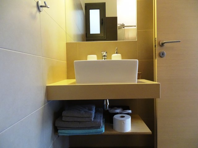 песчаный пляж в 50 м (лежаки и зонтики — бесплатно)