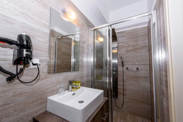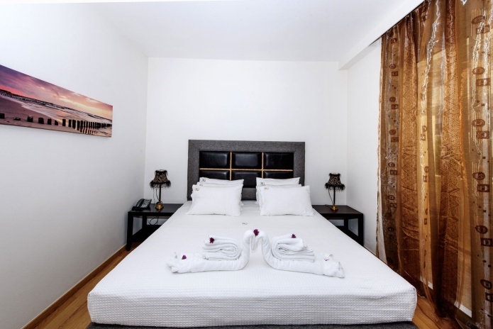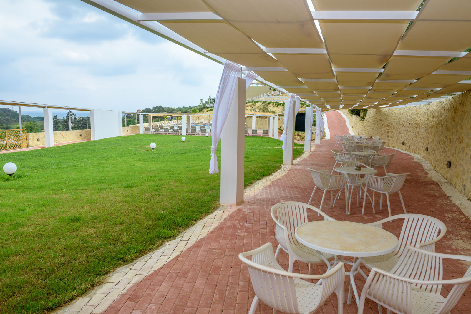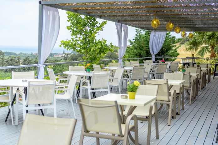 собственный песчано-галечный пляж в 1 км (лежаки и зонтики — бесплатно; курсирует бесплатный автобус до пляжа)